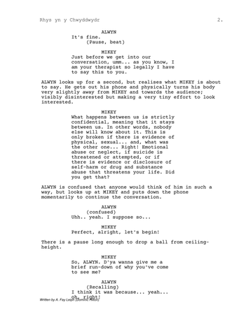 This section of the page is the script I wrote. Note that this was finished and enshrined in paper in late February, and we did make some changes to it since. The first row of images is a clean copy of the script. The second is my annotated copy.